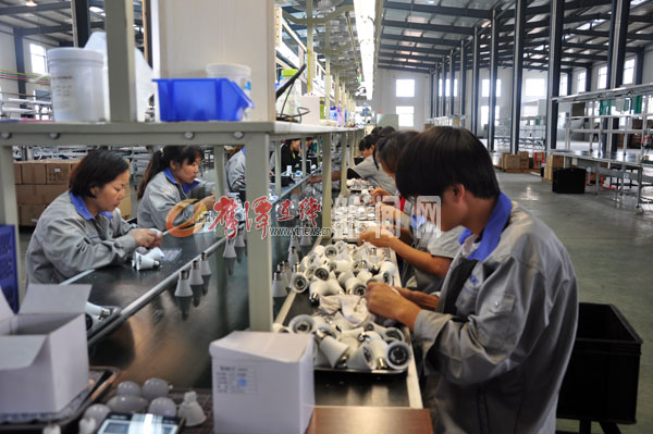 江西晶科電子公司成立才兩年,去年開始建廠房,今年才正式投產(chǎn)。時間雖短,但憑著科技創(chuàng)新和先進(jìn)市場營銷及管理模式,讓其一躍而成“后起之秀”,走上了篷勃發(fā)展的路子。晶科電子公司董事長張社喜介紹說:“公司設(shè)計為5000萬只全光角LED照明光源、5300萬只LED專用電源驅(qū)動、200萬套相關(guān)燈具和3億顆1W及以上功率的LED封裝產(chǎn)品及1.5億只微型變壓器的生產(chǎn)能力,產(chǎn)品市場定位則以外銷為主(60%)內(nèi)銷為輔(40%)。預(yù)計在2015年可實現(xiàn)5000萬元銷售額,目前產(chǎn)品全部外銷?!?/p>